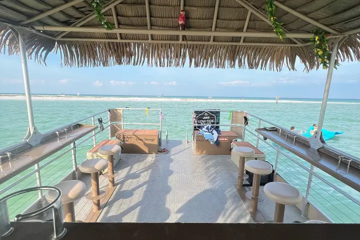 Our private cruise takes you around the crystal-clear waters of the western coast of Siesta Key, Florida and the adjacent areas. Discover the epitome of tropical indulgence with our exclusive 2-hour private Tiki Bar Boat Charter—a voyage that promises sun-soaked fun, unparalleled scenery, and the relaxation while touring Gulf Coast’s hidden gems.