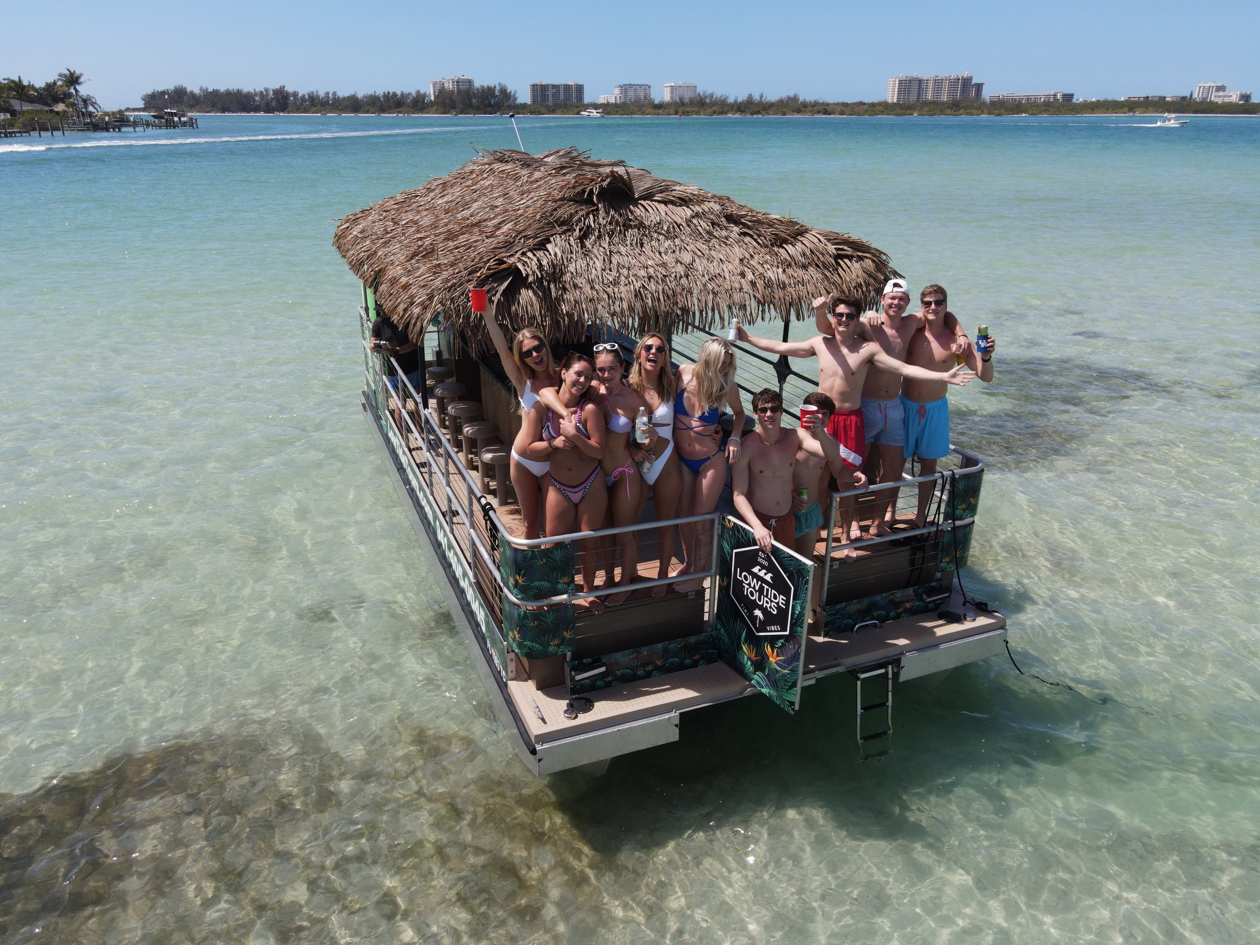 When our standard 2 hour cruise just isn’t enough! This 4.5 hour cruise shows off the best of Florida’s western coast! Leaving ample time to search for dolphin, take in the stunning coastal real estate, have a meal on the water, and enjoy a dip at the sandbar! Our floating tropical oasis is the perfect way to cruise the coast and enjoy time spent on the water!